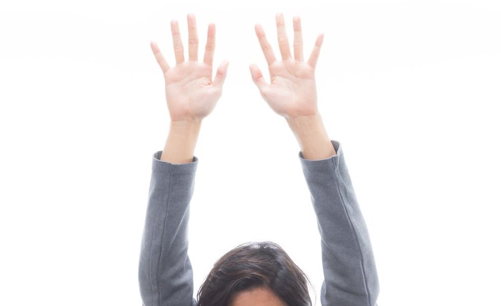 「両手を頭の上にあげて!いいから!すぐに上に!!」って指示して