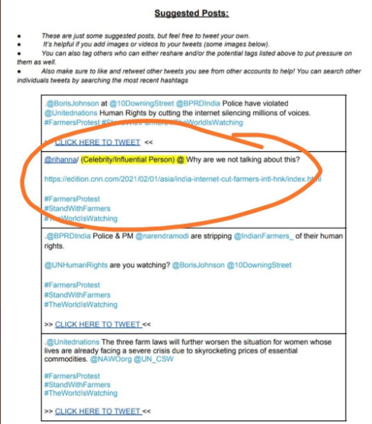 Teenage climate activist Greta Thunberg posted a document to Twitter containing tweets that she was told to post and actions she should take regarding the current protests in India. She quickly deleted the tweet.