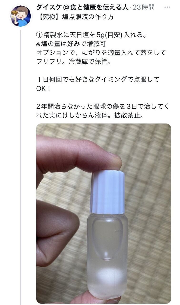 ホーム > なんでも実況 > 【恐怖】Twitter民「食塩とにがりで自家製目薬作れます!目の怪我にどうぞ!」→眼科医「それ失明します」ほぼテロじゃん… 2022/09/17 1:5ch名無し民2022/09/08(木) 00:49:01.421ID:LsSnwXMsd 続きを読む B! LINEへ送る - なんでも実況, 投稿