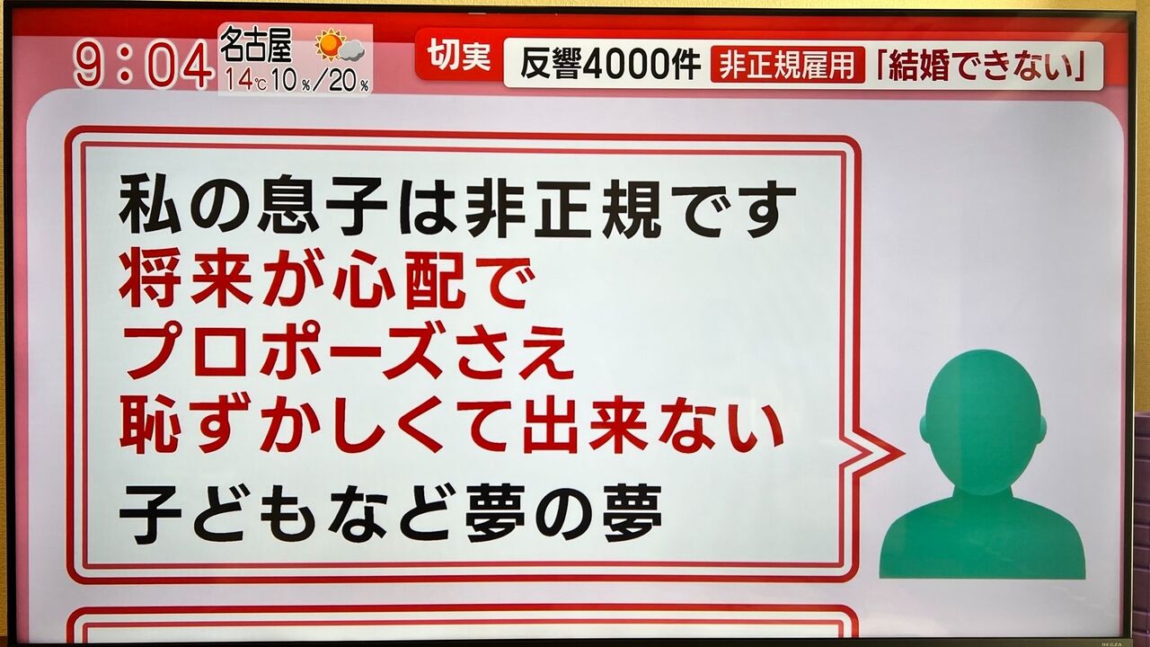 息子が非正規で恥ずかしくて求婚もできない。孫なんかとても望める状況じゃない