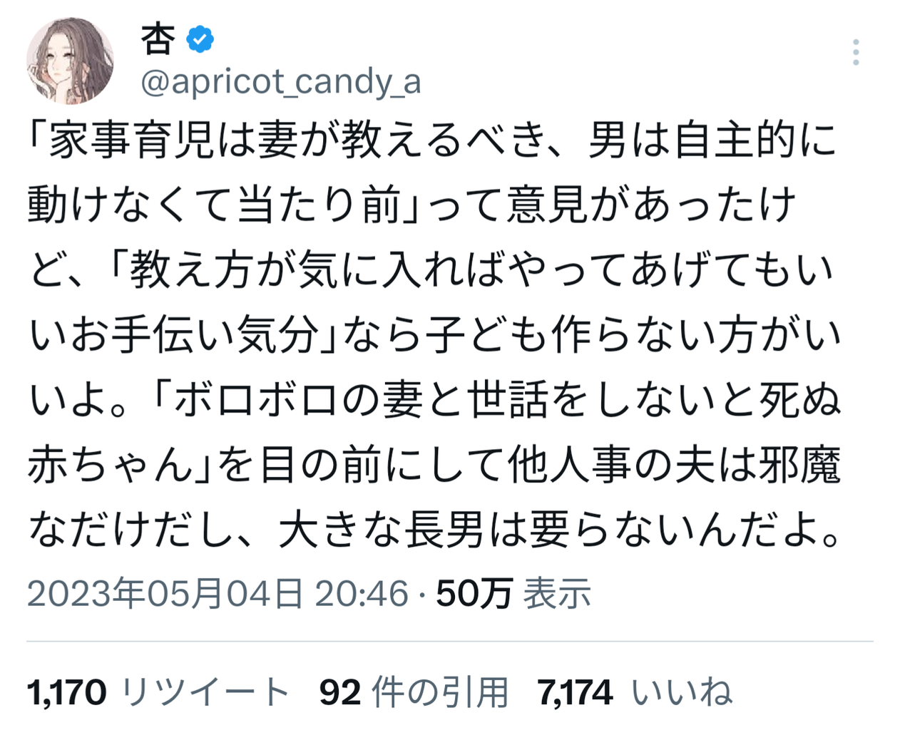 ホーム > 投稿 > 家事育児は妻が夫に教えるべきって意見はおかしい。大きな長男は要らないんだよ 2023/05/08 【正論】女さん「育児のお手伝い気分なら子供を作らないほうがいいよ。大きな長男はいらない」 1: それでも動く名無し 2023/05/05(金) 11:18:47.44 ID:xlzZooX600505 共感しすぎて涙が出た 続きを読む B! LINEへ送る - 投稿, 男性・女性