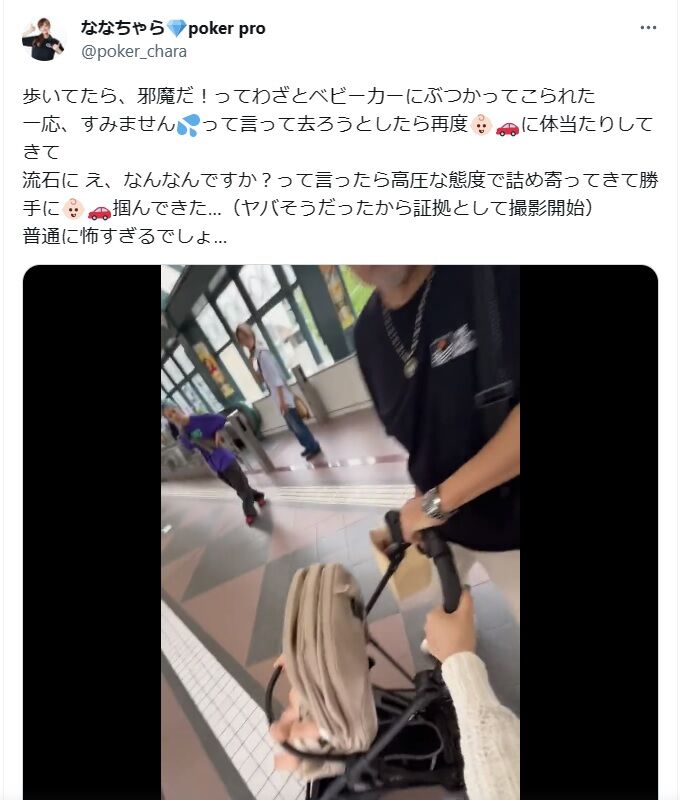 わざとベビーカーにぶつかってこられて怖すぎる。文句言ったら詰め寄ってきて・・