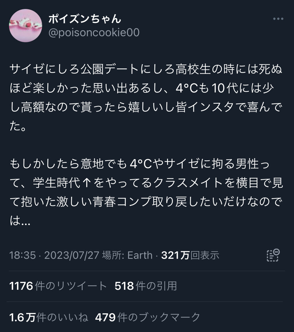 サイゼデートや4℃をプレゼントする事に拘ってる男は非モテで青春コンプレックスを拗らせてる