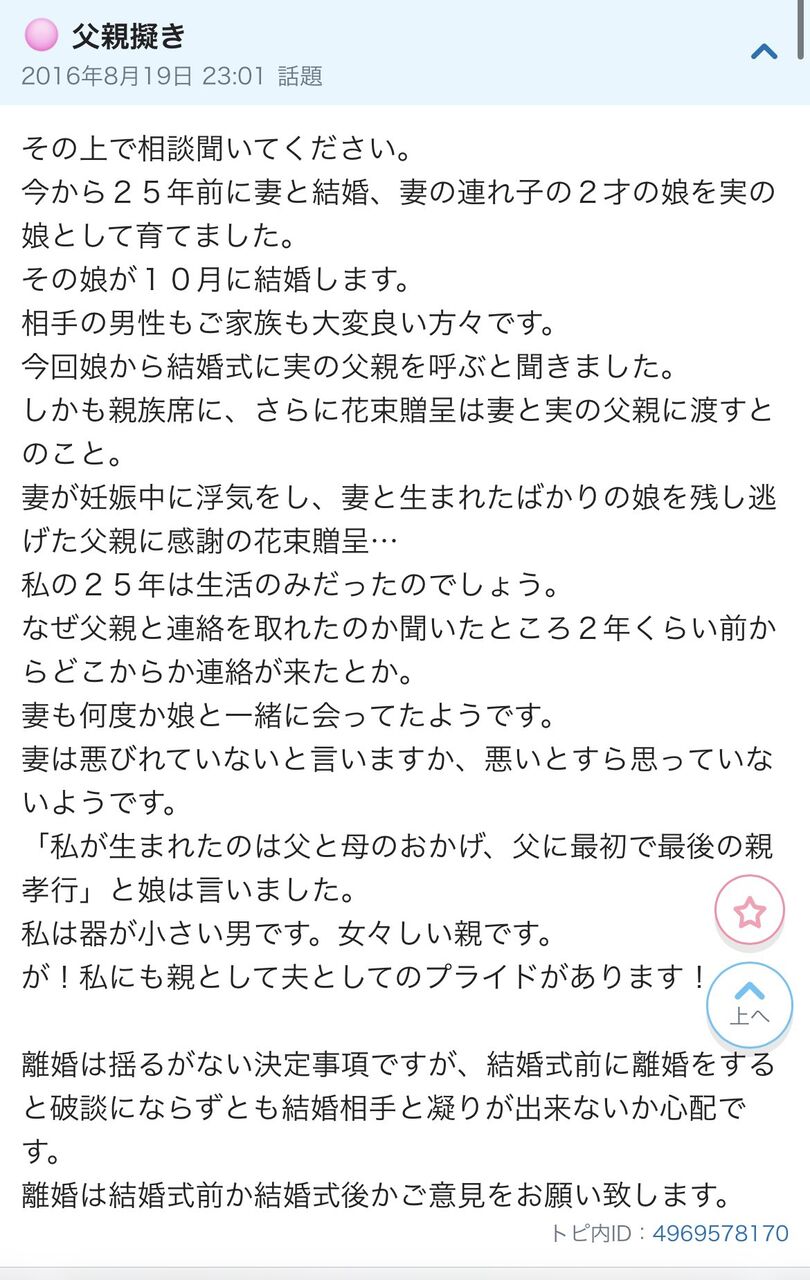 【悲報】妻の連れ子を25年間育てた父親、咽び泣くwwwwwwwwwwwwwwwwww