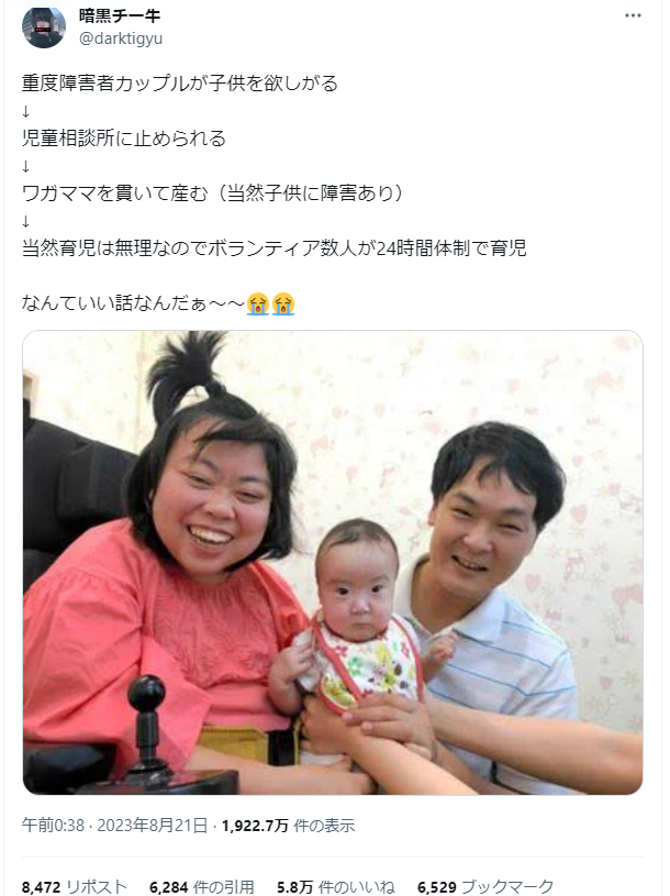 ホーム > 投稿 > 児童相談所が止めたのに重度障害者カップルが子供を産んでしまった。育児なんて無理なのに 2023/08/22 重度障害者カップルが子供を作った結果wwwww 1: 名無しさん@おーぷん 23/08/21(月) 17:30:45 ID:K2hW 続きを読む B! LINEへ送る - 投稿, 身体・健康