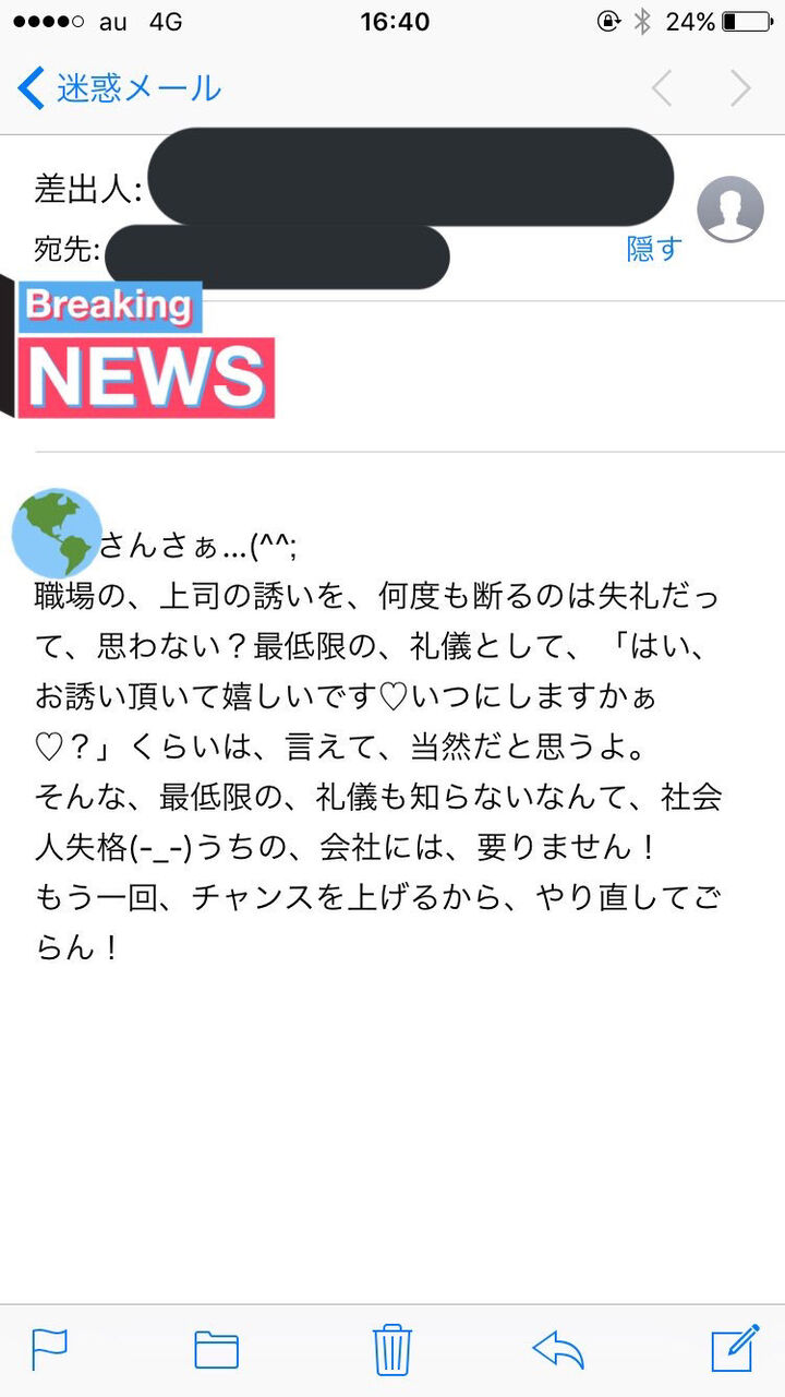 引用元: 【画像】上司「おいどうだ〇〇、今日ちょっと飲み行かないか...?www」私「いえすみません、家に帰ります」→結果wwwwwww