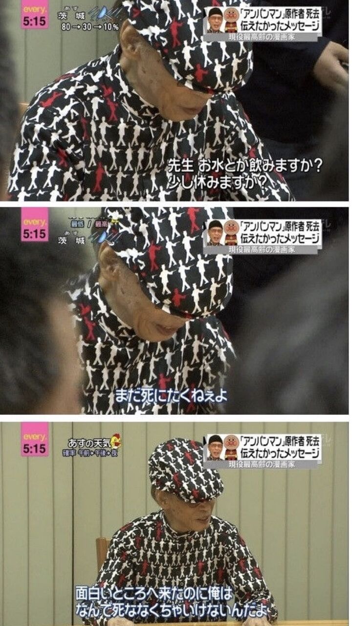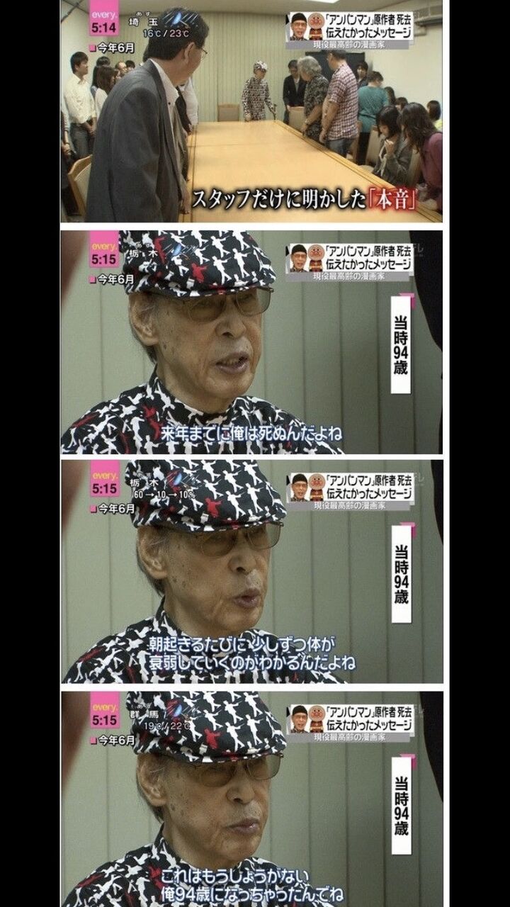 【画像】アンパンマン作者(94)「……まだ死にたくねぇよ」←これ